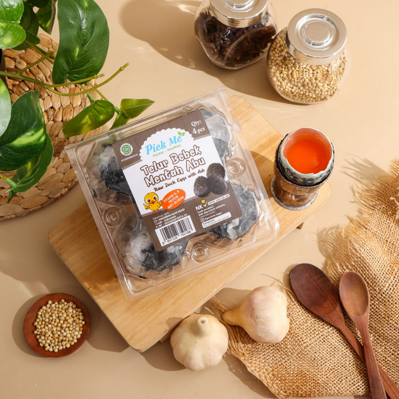 Telur bebek asin mentah yang masih dalam proses pengasinan dengan abu. Memberikan keleluasaan untuk mengontrol tingkat keasinan yang diinginkan. Bersihkan sebelum tanggal asin yangtertera jika tidak ingin terlalu asin, atau bersihkan setelah tanggal asin yang tertera jika inginkan rasa asin yang lebih.