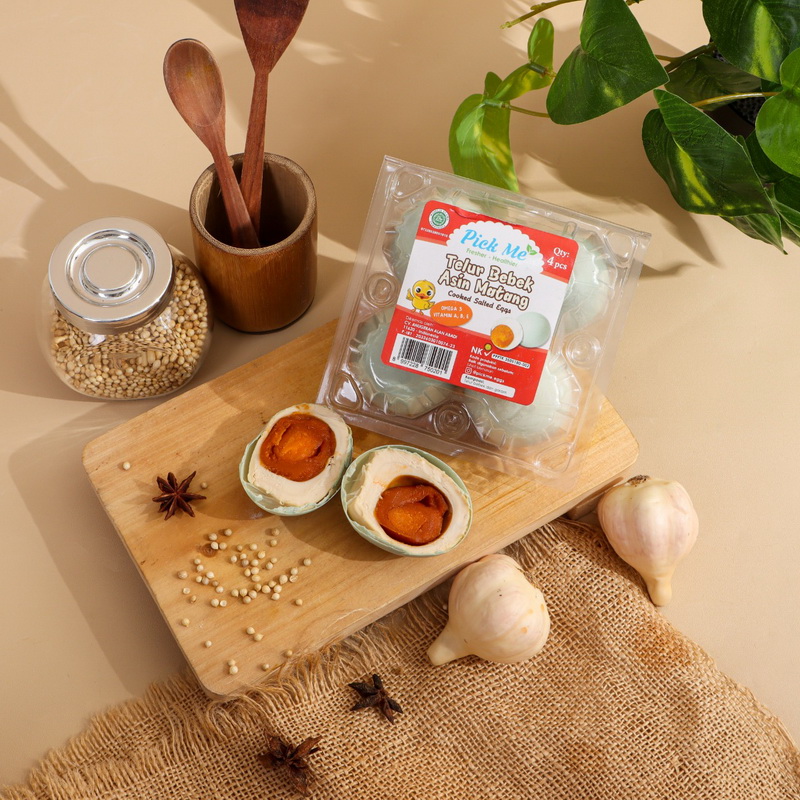 Di buat dari telur bebek pilihan yang melalui proses pengasinan tradisional dan diolah dengan bumbu bawang putih pilihan sehingga menghasilkan telur dengan rasa asin yang pas, tekstur masir dan berminyak. Aroma bawangnya terasa dan sangat menggugah selera. Sudah matang dan siap disajikan.