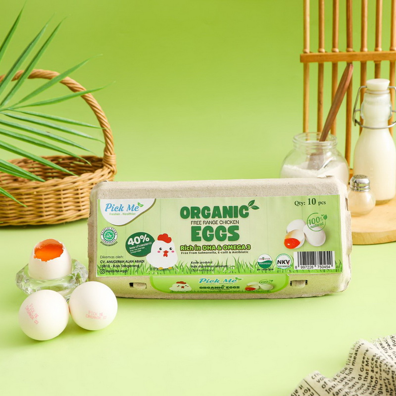 Dihasilkan oleh ayam yang diberikan pakan organik dan diternak secara liar (free-range) di lingkungan ekosistem yang terjaga dengan baik (sustainable environment). Kaya akan asam lemak omega 3, 6, 9 yang sangat penting untuk perkembangan otak anak, baik untuk kesehatan jantung serta dapat menjaga kekebalan tubuh. Dengan 40% kolesterol lebih rendah dibandingkan dengan telur omega pada umumnya. Telur ini bebas residu pestisida dan antibiotik dan bersertifikasi halal dan organik serta terverifikasi di laboratorium.